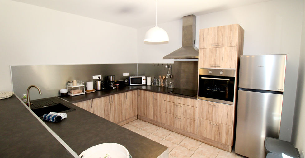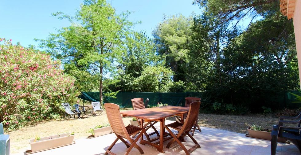 Le tout donnant sur une grande terrasse avec table et chaises, parasol et un grand jardin au calme.